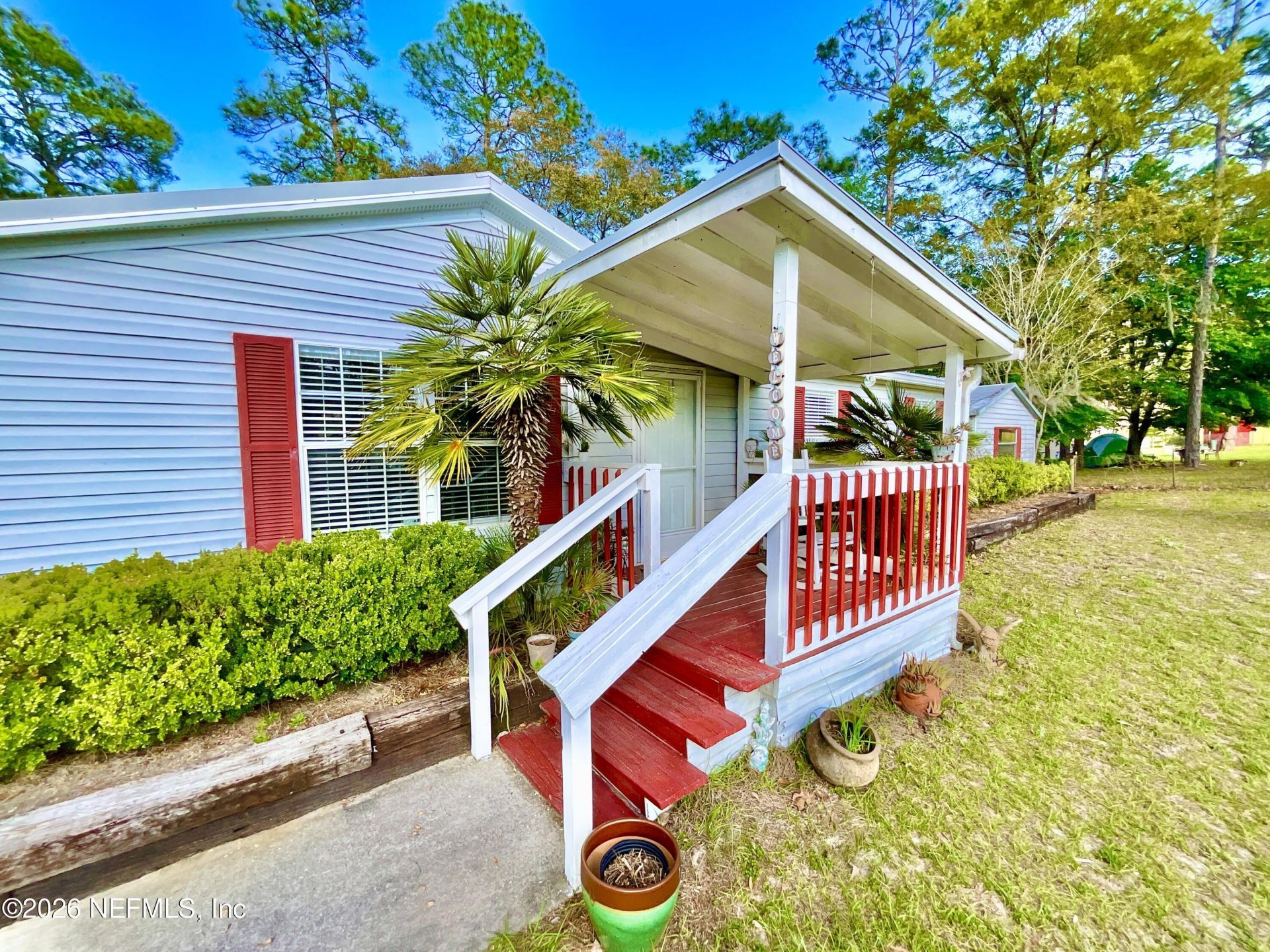 Well-maintained triple-wide mobile home located in Ashley Lake Plantation on 1.02 acres with AG zoning, offering 2,150 square feet of heated and cooled living space. This spacious 4-bedroom, 3-bath home features an open island kitchen with stainless steel appliances, a pantry, and an inside laundry room. A versatile bonus room adjacent to the primary suite is perfect for a home office or flex space. Relax in the family room with a cozy fireplace and enjoy peaceful water views. Roof replaced in 2019. Oversized shed/workshop with ramp access, perfect for storage, hobbies, or workspace needs. Open interior offers flexible use for equipment, tools, or recreational gear. Great functional space with easy access. Conveniently located near historic downtown Melrose and Lake Santa Fe, with an easy commute to Gainesville and Palatka. Schedule your tour today!