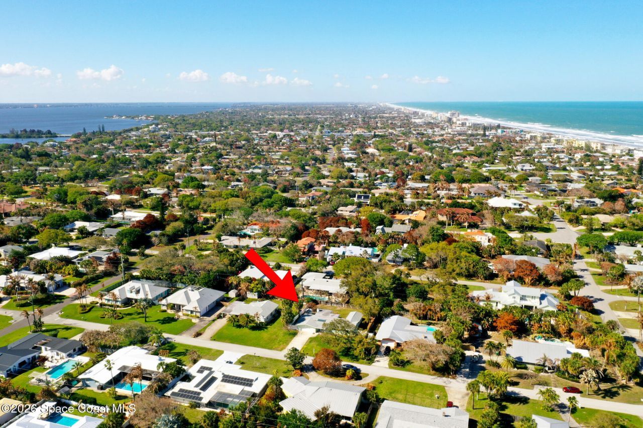 Welcome to this Spacious Indialantic Home by the Sea that features four-bedrooms and an office and offers Terrazzo floors and fresh interior paint, creating a bright, move-in-ready living space. Updated kitchen features S/S appliances and pantry plus breakfast bar perfect for stools. One of the bedrooms is aver 300 sq ft and has private French door entrance and can function as a bedroom, office, or flex space. Enjoy a large enclosed, air-conditioned Florida room with a gas fireplace, plus an additional living room and dining area--perfect for entertaining. Solar HWH. Step outside to stroll to the beach, complete with stairs to the sand and a pavilion for lunch.A long driveway and a two-car garage provide convenient parking, while a welcoming front porch invites quiet mornings and sunset evenings. The front yards large oak tree provides cooling shade. Side yard shed offers more storage. Hurricane shutters for added protection. Prime location near 192 with restaurants and shops.