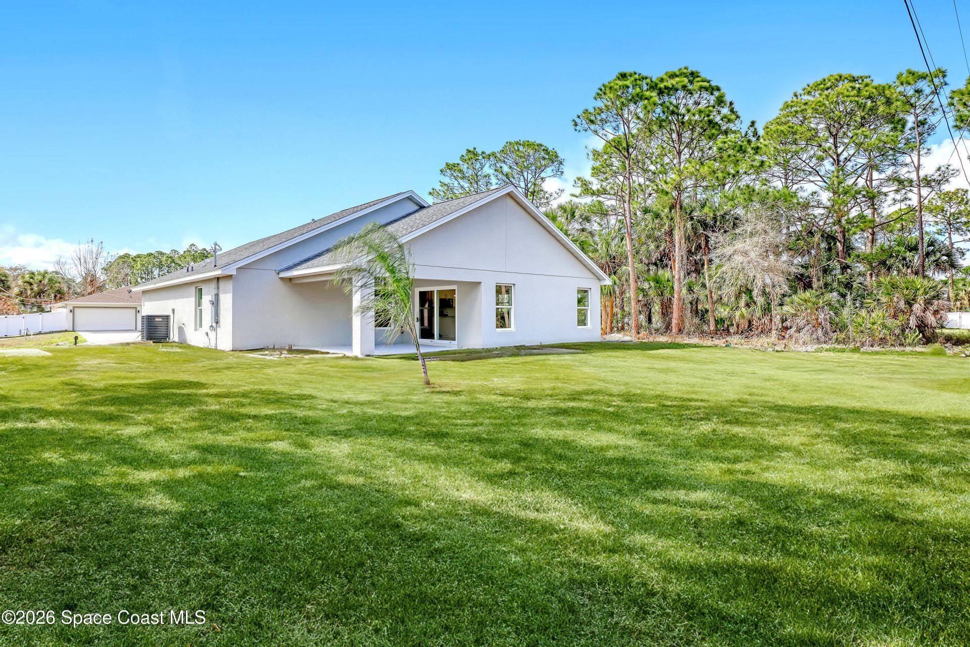 Construction Completed - New construction home with hurricane impact windows and doors and a full home water treatment system already installed. This 3 bedroom, 2 bathroom home offers 1,632 square feet under air with high cathedral ceilings that create a bright and open living space. The kitchen features granite countertops, stainless steel appliances, and luxury vinyl plank flooring throughout the home. Oversized bedrooms provide comfortable living, and the dedicated laundry room includes a washer and dryer. Enjoy the large covered rear porch and the convenience of a two car garage. Located in Palm Bay and built by a local builder, offering the peace of mind that comes from quality construction and attention to detail.