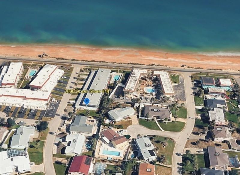 Directions: From Granada Blvd (SR 40), turn north onto Ocean Shore Blvd (A1A), continue 5.3+/- miles, turn left onto Surfside Drive, Unit 14 on the left.