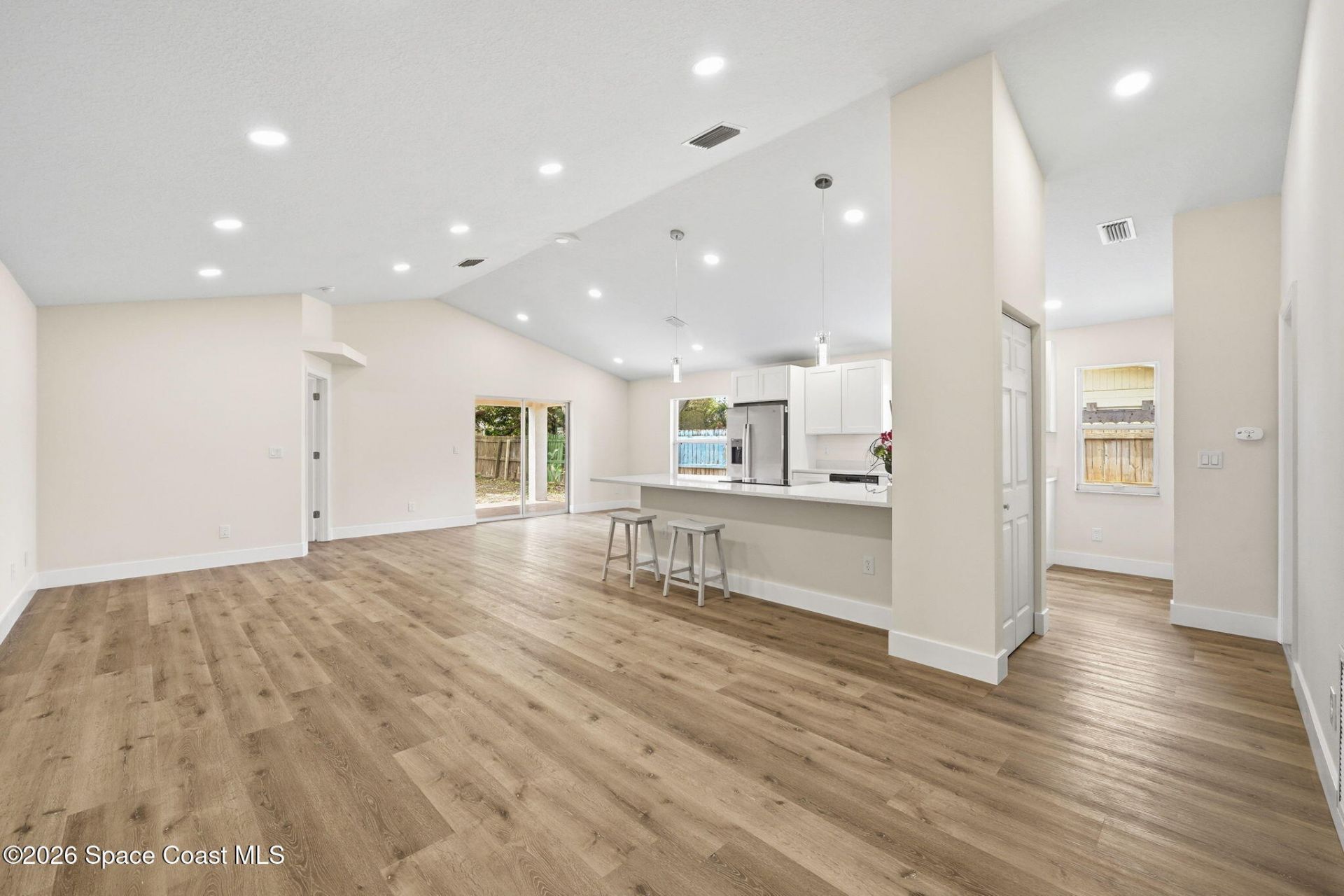 Welcome to West Melbourne with NO HOA. Recently renovated, a shortened list of some major enhancements include: new roof, water heater, a/c, flooring, modern cabinets, etc...We cant wait to show off what weve been up to inside! Cathedral ceilings add to the great room, creating an open, beautiful living space. This property will be fully fenced and features a 2 car garage with a spacious driveway accommodating up to four additional vehicles. Nicely rated school systems in this area. Minutes from shopping, dining, and entertainment, approximately a 10 minute drive to the beach. Its almost ready! Some final touches in progress, you are welcome to come in, please pardon some possible dust though.