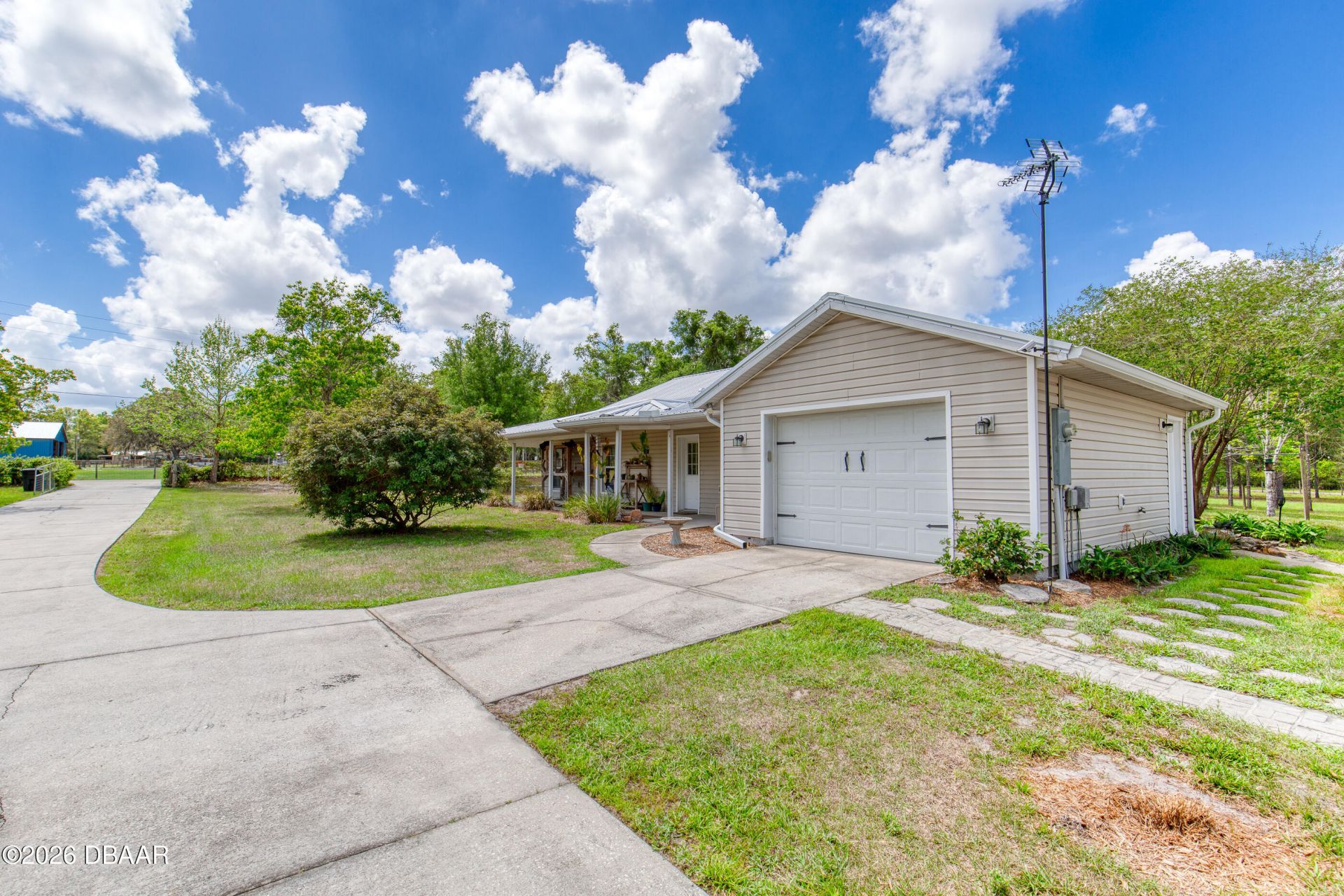 This 4-bedroom, 2-bathroom home sits on 1.25 acres in Lake Helen and was built in 2002 by the owners and has only had one owner, offering a well-maintained property with a functional layout and thoughtful features throughout.Inside, the home features vaulted ceilings, a tray ceiling in the primary bedroom, and a spacious layout designed for everyday living. The primary suite includes a walk-in closet and a double-head shower. Additional storage is found throughout the home with two pantries and two linen closets. An indoor utility room with a sink adds convenience.The home offers multiple outdoor living spaces, including a screened-in back patio and a wraparound covered porch along two sides of the home, providing shaded areas to relax or entertain.The property is well-equipped for both storage and hobbies, featuring a 1-car garage with workshop space, plumbing, and eclectic. There is also a detached 24x24 shop, boat barn/covered RV pad, an additional storage shed, and fully paved concrete driveway.Additional improvements include a metal roof (2022-2023), A/C system (2017), water heater (2017), and appliances (2019). The yard is fully fenced and located on a dead-end street, offering added privacy and usability.With over an acre of land, multiple outbuildings, and a well-planned layout, 640 Lemon Ave offers space, function, and flexibility in a quiet Lake Helen setting.